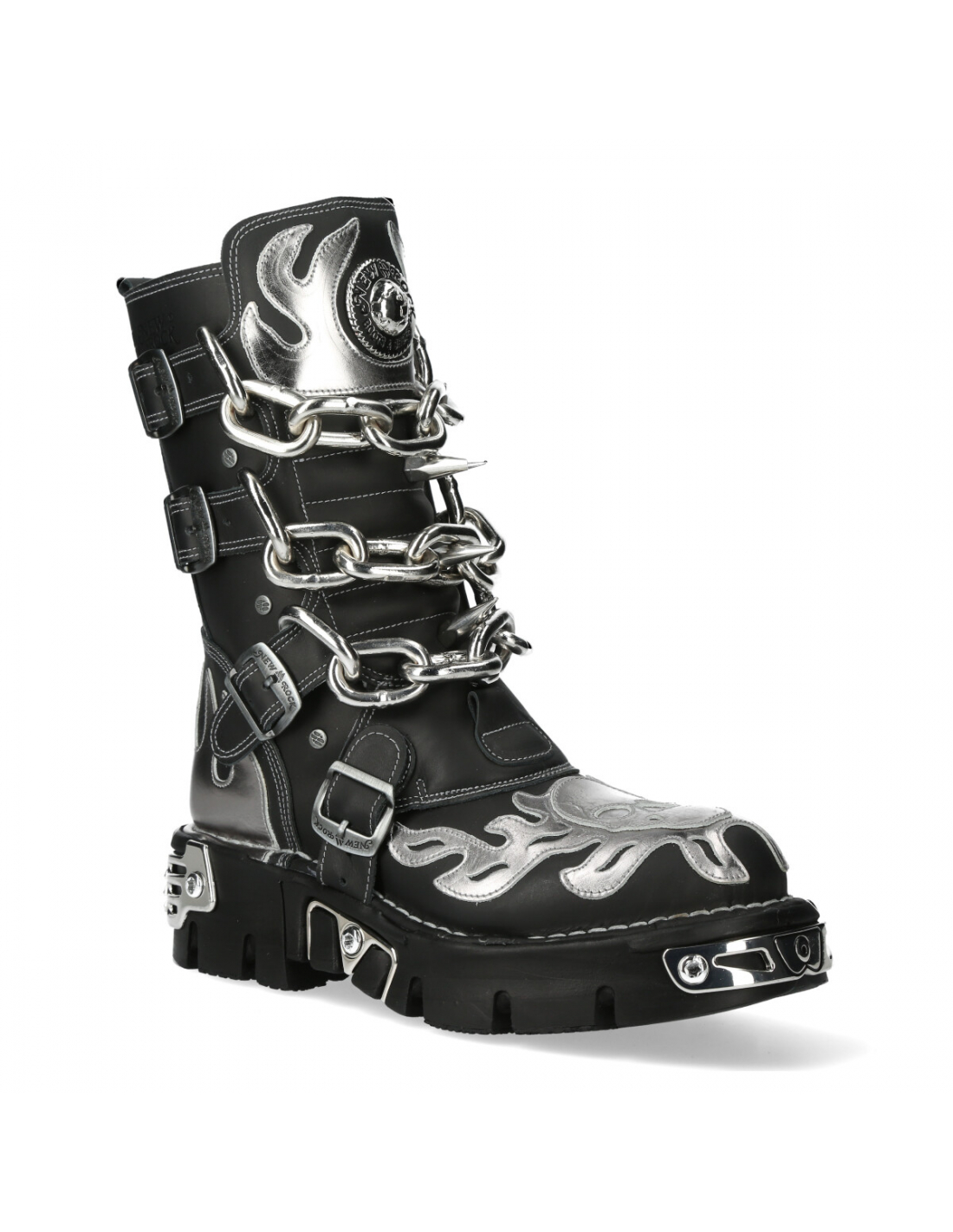 The Boot M-727-S6 of METALLIC COLLECTION. Genuine Leather.New Punk and rock Design with the power and finishing of a original Newrock.. The popular and Original Newrock design goth and metallic togeter in this style.. Fashion and Rock Design reloaded with the most extreme original newrock power.