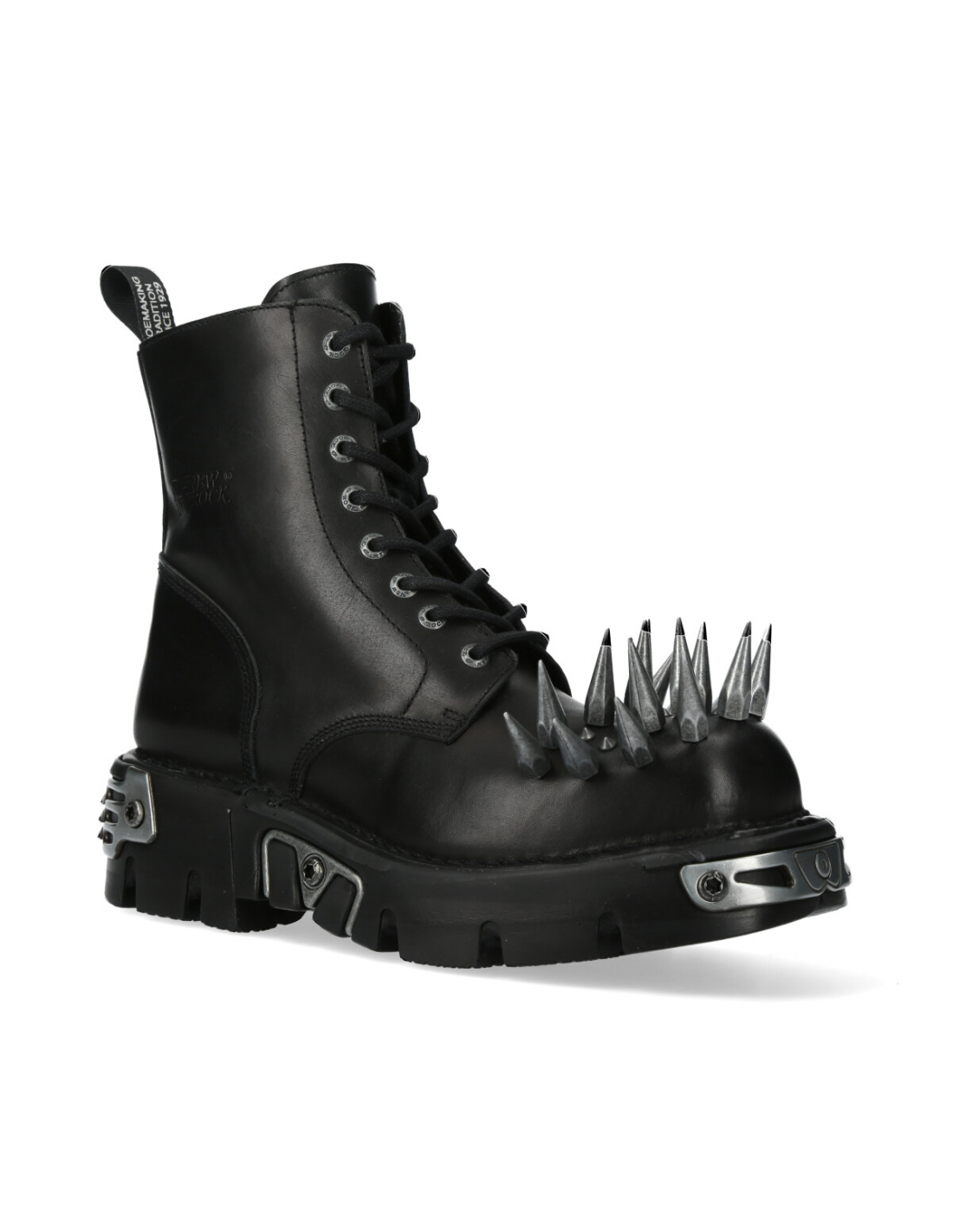 The Ankle Boot M-MILI084CONO-C4 of METALLIC COLLECTION. Genuine Leather.Fashion design with the Military style and Newrock original ADN. New Punk and rock Design with the power and finishing of a original Newrock.. The popular and Original Newrock design goth and metallic togeter in this style.. Fashion and Rock Design reloaded with the most extreme original newrock power.
